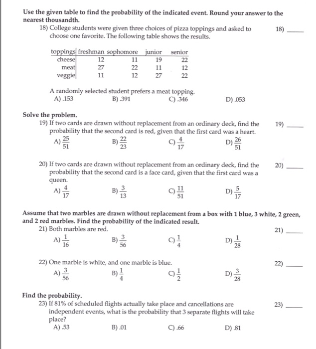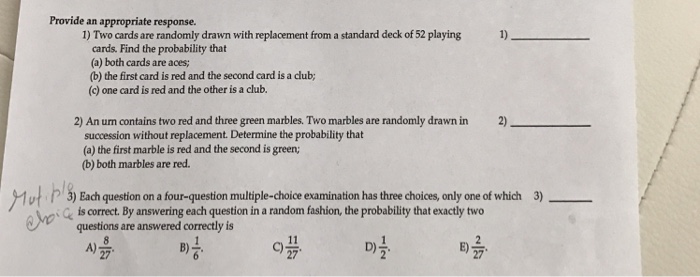Multiple choice questions select one answer choice. In some experiments the sample space may change for the different events. We will simply plug in our answer choices to increase our red marbles and our total number of marbles and see which answer choice results in a probability of 3 5. So they say the probability i ll just say p for probability.
